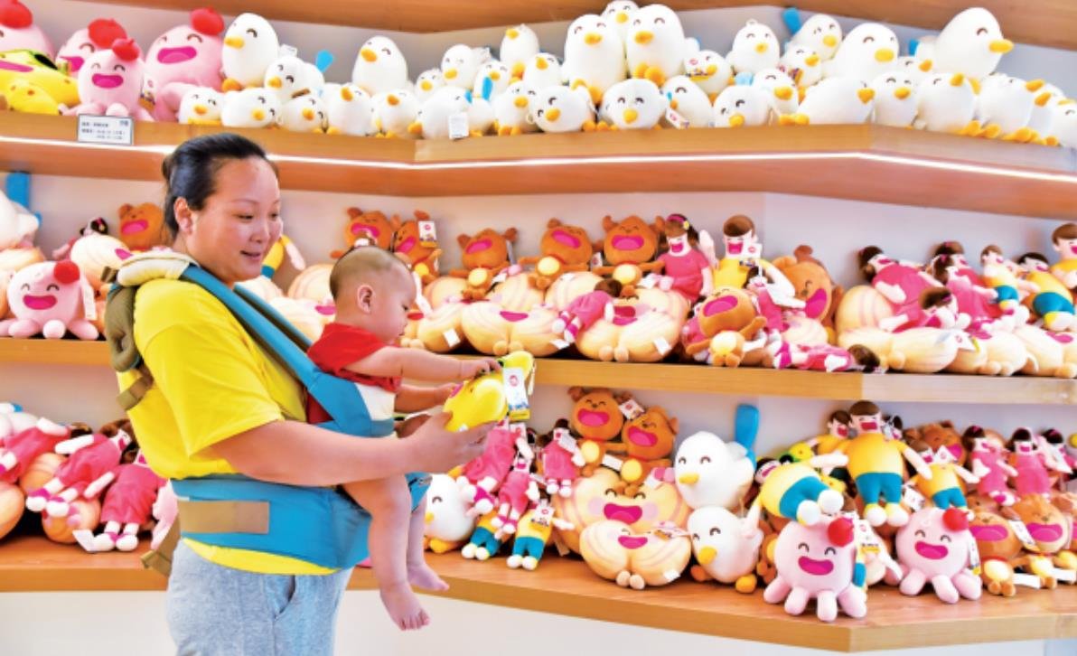 ▲哈舅大本營(yíng)眾多毛絨玩具吸引游客駐足。(韓永奎 攝)
