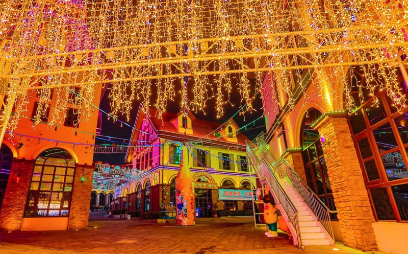 夜幕降臨,金沙灘啤酒城內成了一片“燈?!笔澜?,就地過年的游客紛至沓來,感受不一樣的年味兒。“彩燈時尚靚麗,我們拍了很多照片,發(fā)給家人讓他們一起感受這里的新春氛圍?!绷粼谛聟^(qū)過年的外地人唐越說。