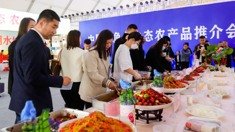 4月30日上午,魚臺生態(tài)農(nóng)產(chǎn)品推介會暨雙招雙引洽談會在金沙灘啤酒城啟動。現(xiàn)場設(shè)置了魚臺生態(tài)農(nóng)產(chǎn)品品鑒、展銷、推介直播和雙招雙引洽談區(qū)等,魚臺縣魚米集團(tuán)、孝賢蝦皇龍蝦、孔府宴酒等20余家當(dāng)?shù)刂髽I(yè)攜魚臺綠色大米、生態(tài)小龍蝦、魚臺毛木耳等名特優(yōu)農(nóng)產(chǎn)品亮相。