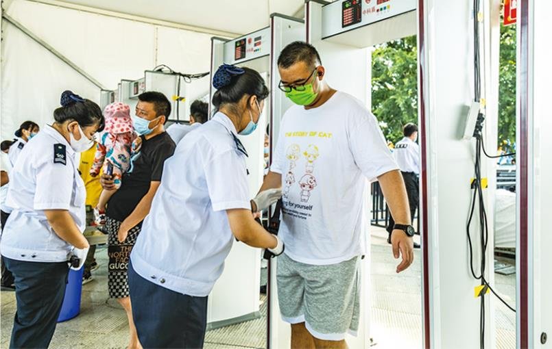 ▲安檢人員對入城游客進(jìn)行細(xì)致檢查。