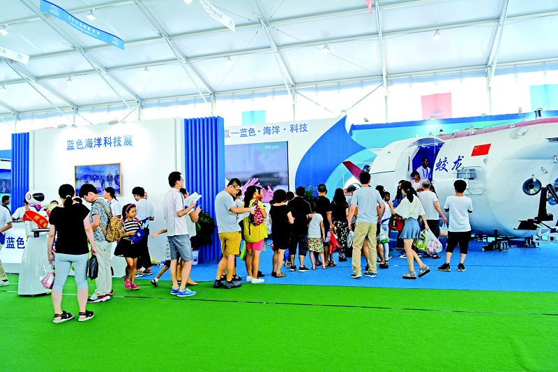 展示山東及青島推進新舊動能轉(zhuǎn)換、實施海洋科技自主創(chuàng)新的新成果,以及青島西海岸新區(qū)實施海洋戰(zhàn)略、率先藍色跨越的新亮點,山東·青島館處處藍色脈動。哈工程、北船重工、海西重機、華大基因、三泰集團等駐青高校、大企業(yè)集中亮相,展出海工裝備、船舶制造、海洋生物、海洋醫(yī)藥、基因工程、海水淡化等藍色科技創(chuàng)新發(fā)展技術,展現(xiàn)藍色經(jīng)濟發(fā)展的宏偉藍圖。