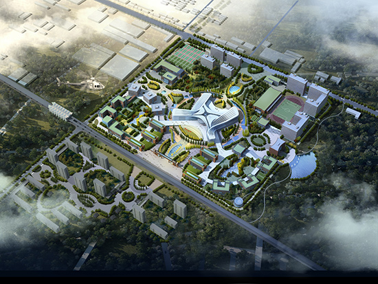 對外經(jīng)濟(jì)貿(mào)易大學(xué)青島國際校區(qū)項目位于青島西海岸新區(qū)張家樓鎮(zhèn)與濱海街道辦事處轄區(qū)交界處,204國道以南、杻杭村以西、大新莊村以北、德勝利公司以東,總用地789畝。校區(qū)規(guī)劃總建筑面積48萬平米,擬分三期建設(shè),全面建成后可容納在校生10000人。項目一期由黃發(fā)集團(tuán)投資建設(shè),占地334畝,總建筑面積14.5萬平米,主要包括教室(學(xué)院樓)、食堂、圖書館、室內(nèi)體育用房、后勤及附屬用房、國際學(xué)術(shù)交流中心(國際會議中心)、基礎(chǔ)設(shè)施、本階段的室外工程、地下車庫及人防和存量用房提升改造(藝博城改造)等。