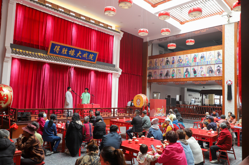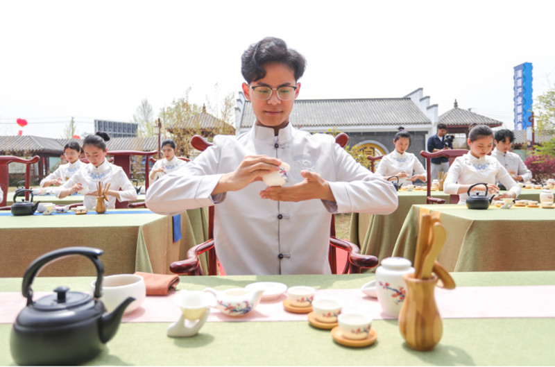 德勝樓大戲院里,一場(chǎng)傳統(tǒng)相聲《論捧逗》引得觀眾陣陣掌聲;新時(shí)代文明結(jié)婚禮堂里,30對(duì)新人互許愛(ài)的誓言,共赴婚姻的殿堂;沏茶、賞茶、聞茶、飲茶、品茶,南茶北引展覽館中,茶藝師們正展示著傳統(tǒng)茶藝;抹茶學(xué)院里,抹茶文化的歷史講解正如火如荼地進(jìn)行著,游客們學(xué)習(xí)之余品鑒著新款的抹茶美食......